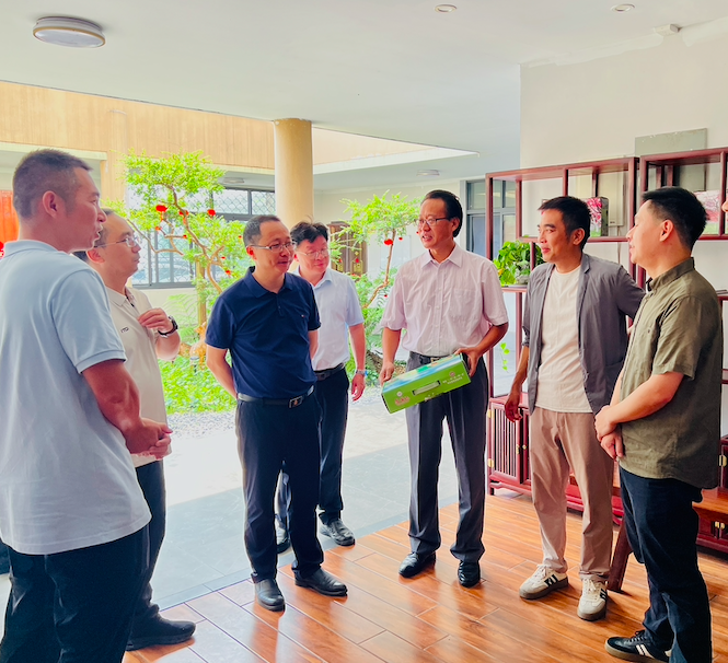 团队最后一站来到广福镇桃花源景区,与驻镇帮镇扶村驻广福镇工作队队长郭勇、景区负责人钟明雄等深入探讨3A景区申报进展。该景区占地1100亩,是集鹰嘴桃种植、梅花鹿养殖、民宿餐饮、休闲观光为一体的综合性农文旅项目,2022年已获评“梅州市休闲农业与乡村旅游示范点”。艺术设计学院团队对景区游览图、景观标识系统等提出了专业建议,并承诺全力支持景区申报所需的各类设计工作,助力打造“蕉岭版丽江”的文旅名片。